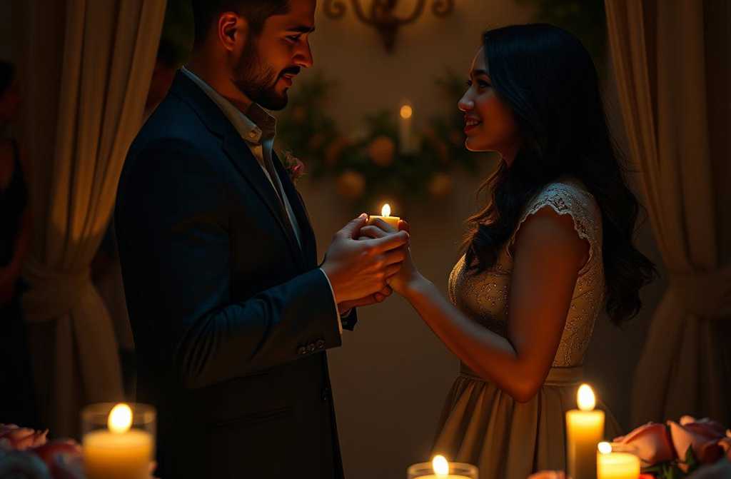 Ваш столик, сказал метрдотель, отодвигая стул, и Катя замерла у входа в небольшой VIP-зал. В темноте мерцали сотни свечей, отбрасывая причудливые тени на белоснежную скатерть. В центре стояла ваза с тёмно-красными розами её любимыми. Тихая мелодия лилась из динамиков.
