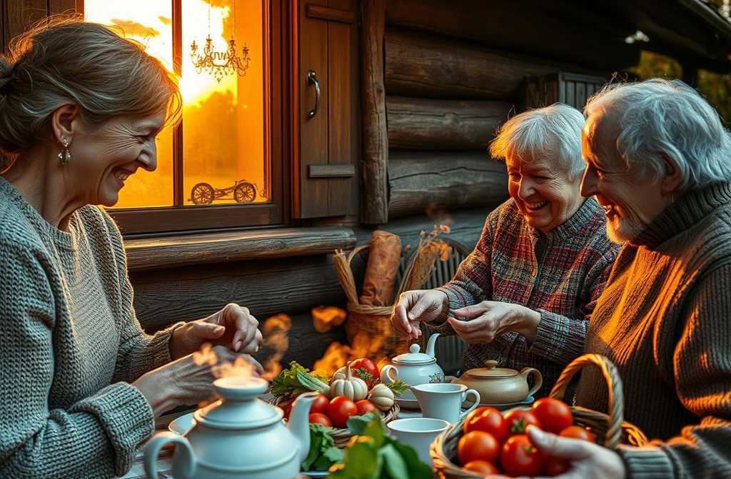 Сентябрьский вечер окрасил небо в багрянец. На веранде Оля расставляла чашки для вечернего чаепития. Через открытую дверь доносились голоса родителей Пётр Николаевич рассказывал матери, как сегодня собрал последние помидоры в теплице.