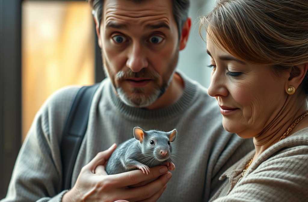И с этими словами он достал из-за пазухи маленькую серую крысу с розовыми ушками, носиком-пуговкой и блестящими глазками-бусинками.