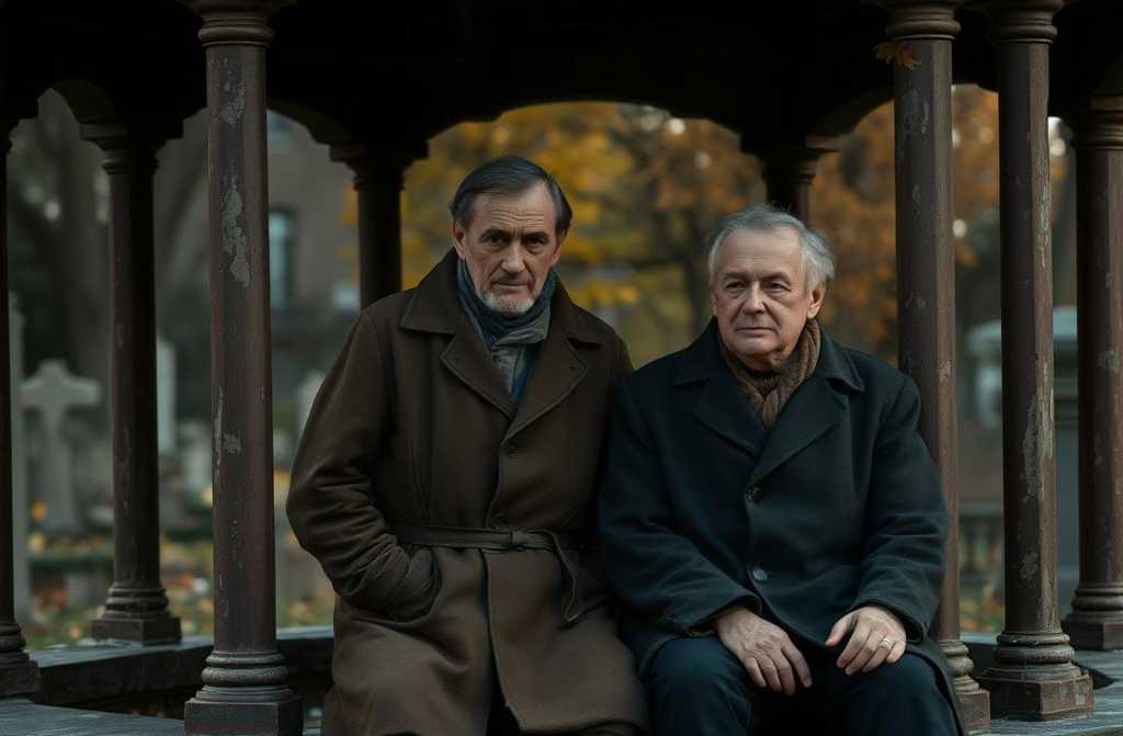Игорь и Вадим сидели в полуразрушенной кирпичной беседке, прячась от пронизывающего ветра. Их глаза, привыкшие к вечной настороженности, равнодушно скользили по траурной процессии. Ритуал скорби был для них просто фоном. Поднявшись, они отряхнули поношенные штаны и, приняв скорбные маски, направились к плачущим. Шептали шаблонные соболезнования, пожимали холодные руки. В горе люди не замечали этих двух невзрачных мужчин в потрёпанных куртках.