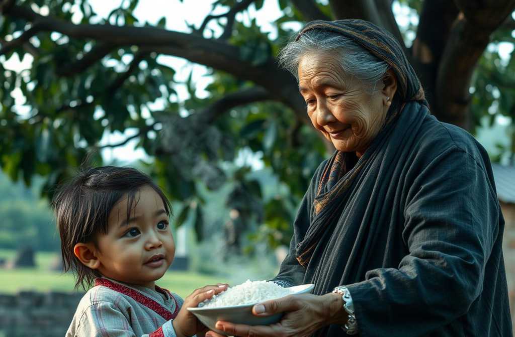 Знаешь, жила-была старушка по имени Пелагея Петровна, было ей за восемьдесят, а прозвали ее «рисовая бабушка». Дом был у нее самый простой – в далекой деревушке в Калужской области. Избушка деревянная, крыша шиферная, а в углу печка кирпичная, где она день за днем варила одно и то же: гречневую кашу да щи. Всю жизнь она учителем проработала. Арифметике детей учила, грамоте, да и тому, что людей жалеть надо. Пенсия пришла, а Пелагея отдыхать не захотела. Еще, говорит, многому научить могу. Да беда: дети в их деревне в школу перестали ходить. И не от лени, а от пустого живота. То на свекольных полях с утра до вечера кто, то по рыночным углам просит кто. Не до учебы, когда урчит в желудке. Вот и придумала Пелагея способ простой да мудрый. Выходила поутру, садилась на лавочку с дымящимся горшком каши да кричала: «За урок – тарелка каши!» И стали ребятишки подходить, сначала робко она им слово новое покажет, пример несложный, сказку расскажет. А потом… кашей накормит. Новость разлетелась по округе. Все больше и больше детишек каждый день приходило. Ни копейки она не брала. Лишь бы слушали да старались. Матери ей помогать начали – кашу вместе варить. Мукомол муку мешок принес. Плотник новую скамью смастерил. Так под старым кленом школа родилась. Школа, где пахло щами, добротой… да гречкой свежесваренной. Фотограф местный увидел это: старушка с руками морщинистыми кашу ребенку накладывает, а он на нее смотрит, словно на ангела небесного. Фото в газете напечатали, люди весть передавали шепотом: «Учить детей – не только за партой дело… Иной раз хватит горшка каши да сердца широкого.» Нет теперь с нами Пелагеи Петровны. Но на память о ней всем селом столовую-школу построили при школе да ее именем назвали. А над входом висит вывеска: «Здесь голод знанию проиграет навсегда.» Потому что она главное уразумела: Сперва накорми живот… Потом уже голову.