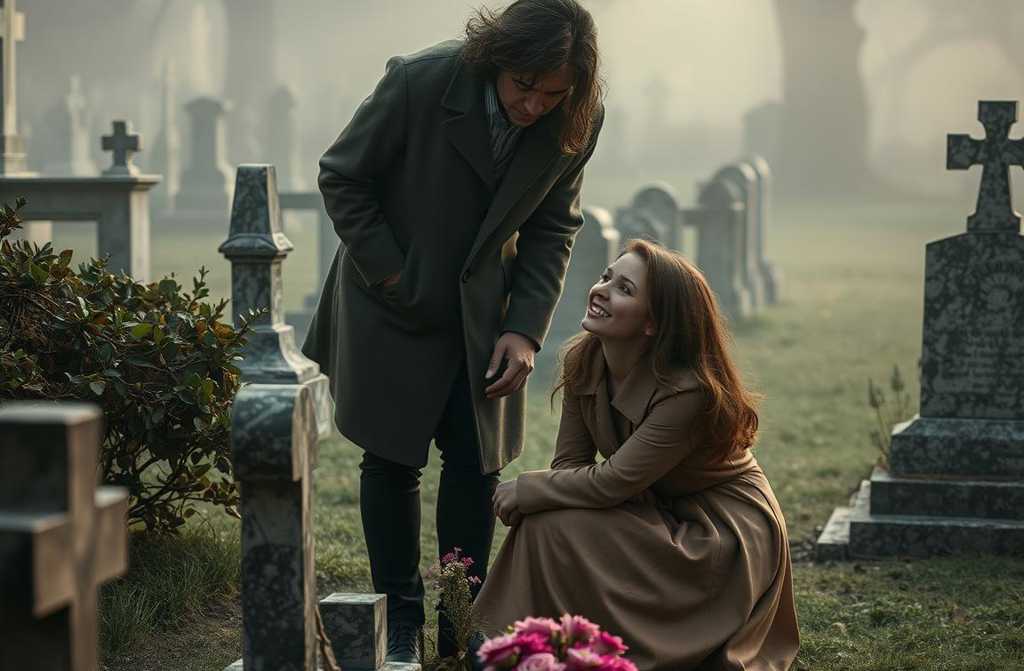 Сердце сжалось. Она остановилась у плиты, плечи её задрожали беззвучные, тяжёлые рыдания. Она опустилась на колени, не замечая, как пачкается её дорогая одежда, и положила цветы рядом с его скромным букетиком.