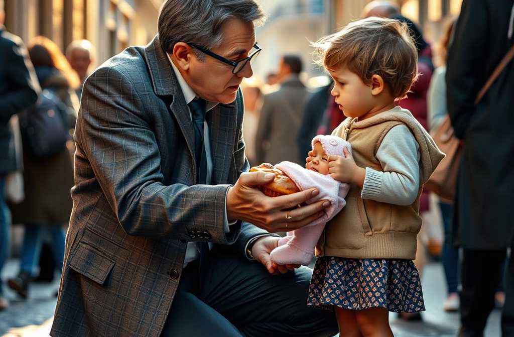 Перед ним стоял мальчик лет семи. Худенький, в потрёпанной одежде, с глазами, полными слёз. В руках он держал свёрток крошечную девочку, завёрнутую в выцветшее одеяло. Малышка тихо хныкала, а брат прижимал её к груди, будто от этого зависело всё.