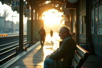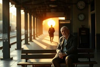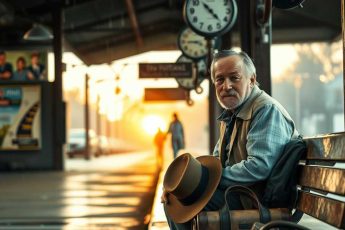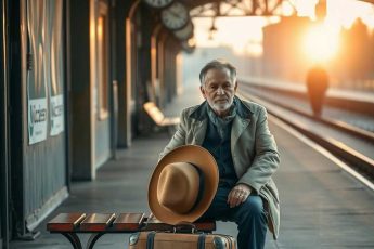 На забытом перроне, где давно уже не останавливались поезда, сидел мужчина с потрёпанным чемоданом.