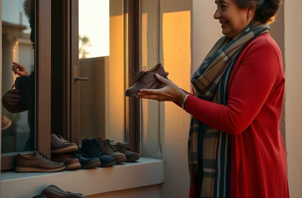 ЖЕНЩИНА, СОБИРАЮЩАЯ ЗАБЫТЫЕ ОБУВЬ В ГОРОДЕ
