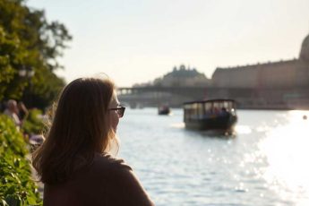 На набережной сидела Алина и наблюдала, как по реке проплывает белый теплоход. От него расходились волны