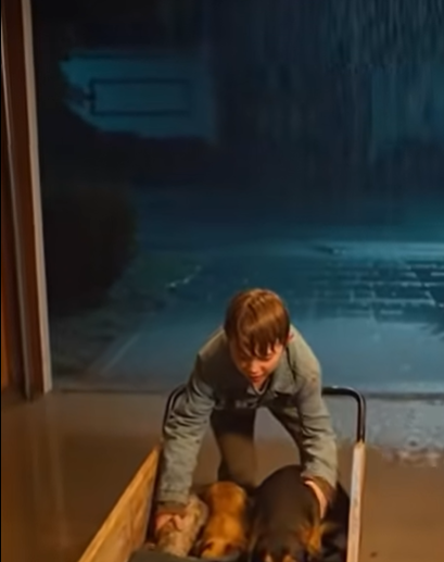Ливень стоял стеной. Ледяные капли били по крышам, а ветер гнул деревья к земле. Посреди этого хаоса, на заднем дворе старого дома, маленькая фигурка боролась с тяжелой деревянной тележкой.