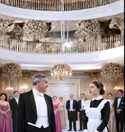Золотой зал особняка сверкал от огней хрустальных люстр. Виктор, облаченный в безупречный смокинг, стоял в центре внимания, потягивая дорогой коньяк. Рядом с ним, словно тень, застыла горничная Елена. Ее лицо было непроницаемым, несмотря на насмешливые взгляды гостей. Виктор явно искал повод для шоу.